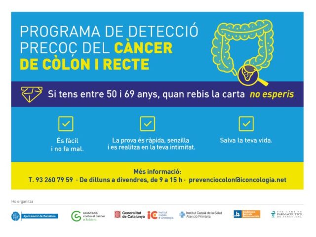 El programa de cribratge s’adreça a homes i dones entre 50 i 69 anys, a qui se’ls convida cada dos anys a realitzar un test de sang oculta en femta. Aquesta prova, que és senzilla i accessible a través de les farmàcies col·laboradores, busca facilitar la detecció precoç del càncer colorectal i millorar la participació dels veïns i veïnes dels barris de Badalona.