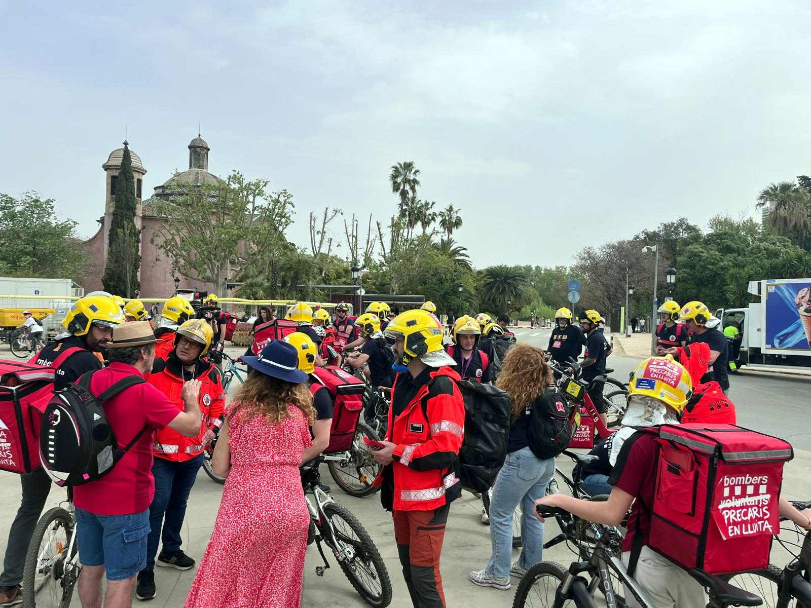 ACN Barcelona – Els bombers voluntaris han tornat a denunciar aquest dissabte la seva precarietat laboral amb una bicicletada pel centre de Barcelona com si fossin ‘riders’ d’empreses de repartiment a domicili. Mig centenar de persones han participat en una acció organitzada per la plataforma Bombers Precaris en Lluita per reclamar “millores urgents” dels drets laborals i denunciar una “professionalització encoberta insostenible”. “Som bombers sense drets laborals i estem controlats per una aplicació com els riders de Glovo”, ha criticat el president de Bombers Precaris en Lluita, Daniel Sitjà, que ha avançat que ja han estat admeses set de les demandes conjuntes presentades per l’entitat a finals del 2025.