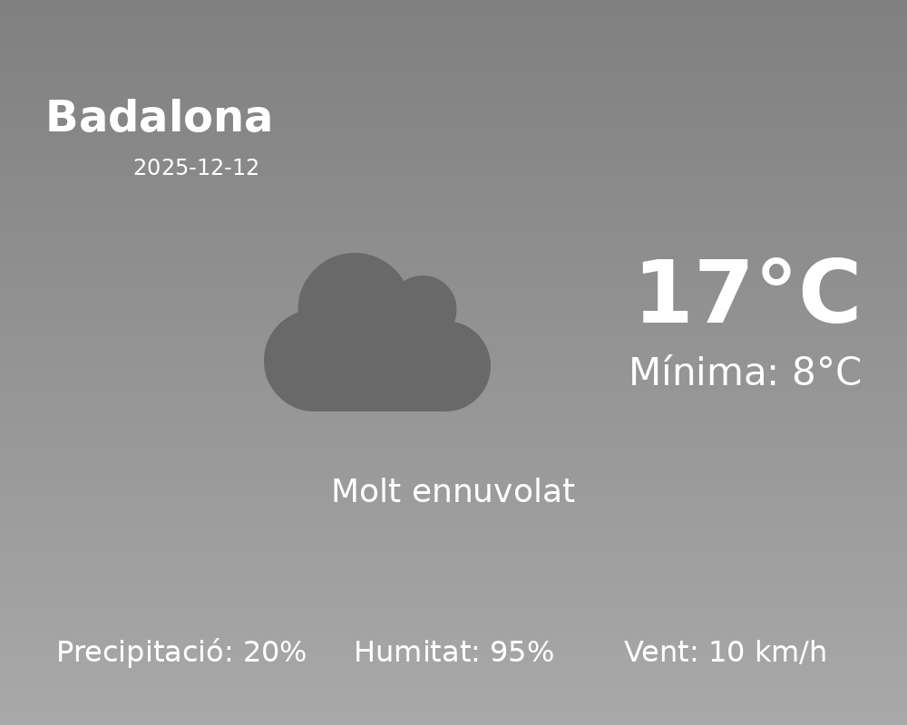 En resum, avui a Badalona gaudirem d’un dia tranquil, amb temperatures agradables però amb una elevada humitat. A més, hi ha la possibilitat de plugims aïllats, per la qual cosa recomanem portar un paraigua a mà.