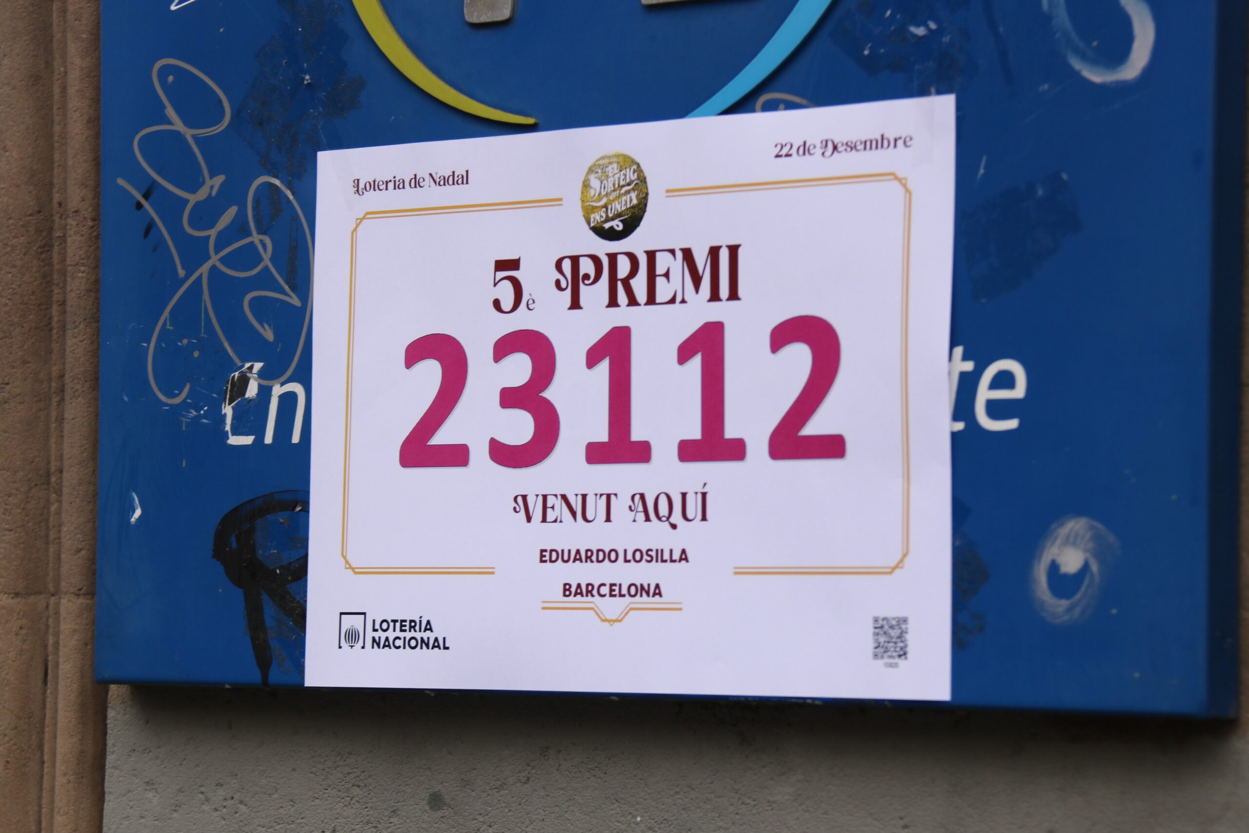 ACN Barcelona – La ‘fada” de l’administració de loteria número 270, situada a la Gran Via de Barcelona, 492, ha portat la sort per repartir 60.000 euros “dècim a dècim” de la rifa de Nadal. Així ho ha explicat a l’ACN en Jordi, treballador de l’establiment, i ha dit que és una “tradició” si els clients demanen fregar les butlletes per aquesta figura que tenen exposada a l’interior del local. L’empleat ha detallat que la sèrie venuda del cinquè premi (23112) ha estat “per finestreta” i que, per tant, ha apuntat que “molt probablement” deuen ser veïns del barri. Segons ha concretat, l’any passat també van distribuir un cinquè premi de Nadal i un segon del sorteig de Reis.
