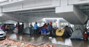 Els desallotjats del B9 acampen a sota d’una sortida de la...