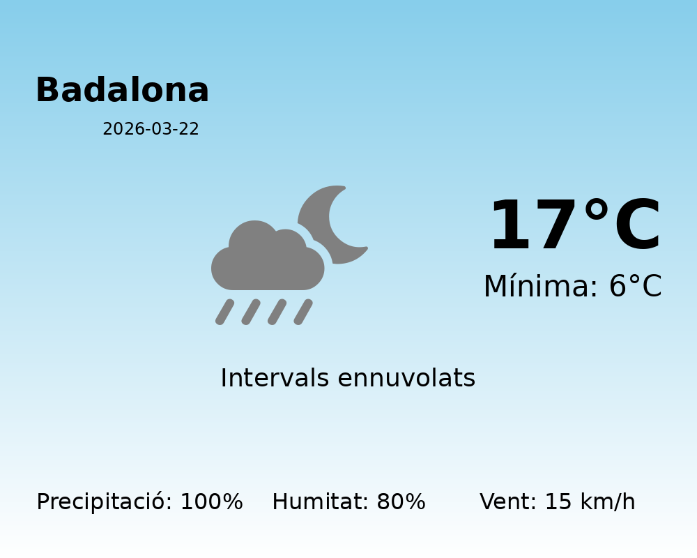 Avui, 22 de març de 2026, Badalona experimentarà un dia notablement humit amb condicions meteorològiques força canviants. Aquí teniu el resum de la previsió meteorològica per a la jornada.