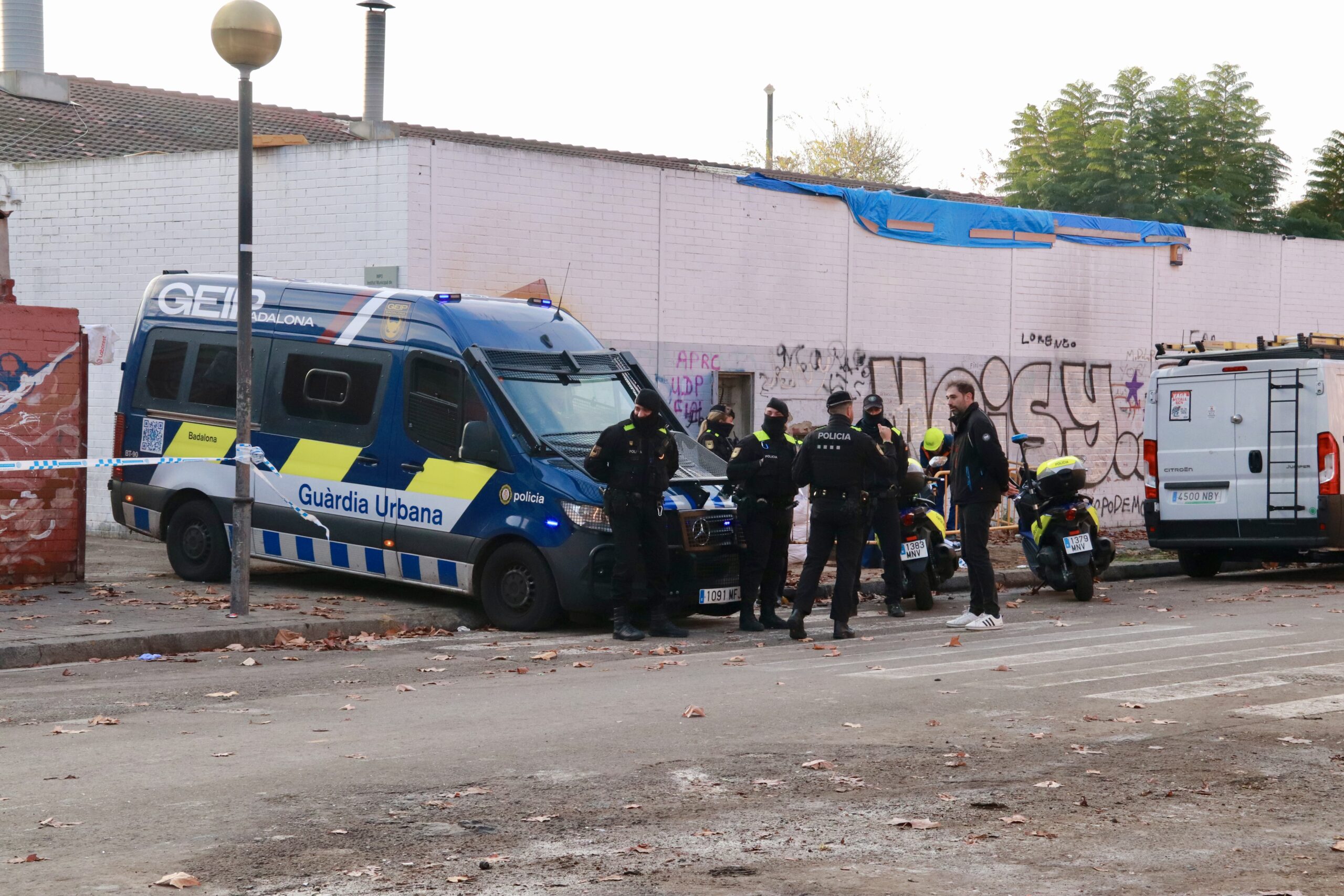 ACN Badalona – Prop d’un centenar de persones han passat la nit al ras davant de l’antic institut B9 de Badalona, després de ser desallotjats aquest dimecres. Aquests ciutadans han improvisat una acampada amb tendes de campanya, fogueres i ferralla a la plaça situada just davant de l’espai, que està acordonada per la policia. Agents del Grup d’Intervenció Especial de la Guàrdia Urbana de Badalona (GEIP) es troben també desplegats a la porta que dona accés a l’antic institut, vetllant perquè ningú pugui accedir a l’espai desallotjat. També hi ha operaris de la companyia de la llum que està tallant els subministraments que hi havia al B9. A l’espai hi havien arribat a malviure uns 400 migrants, però en el moment del desallotjament eren menys.